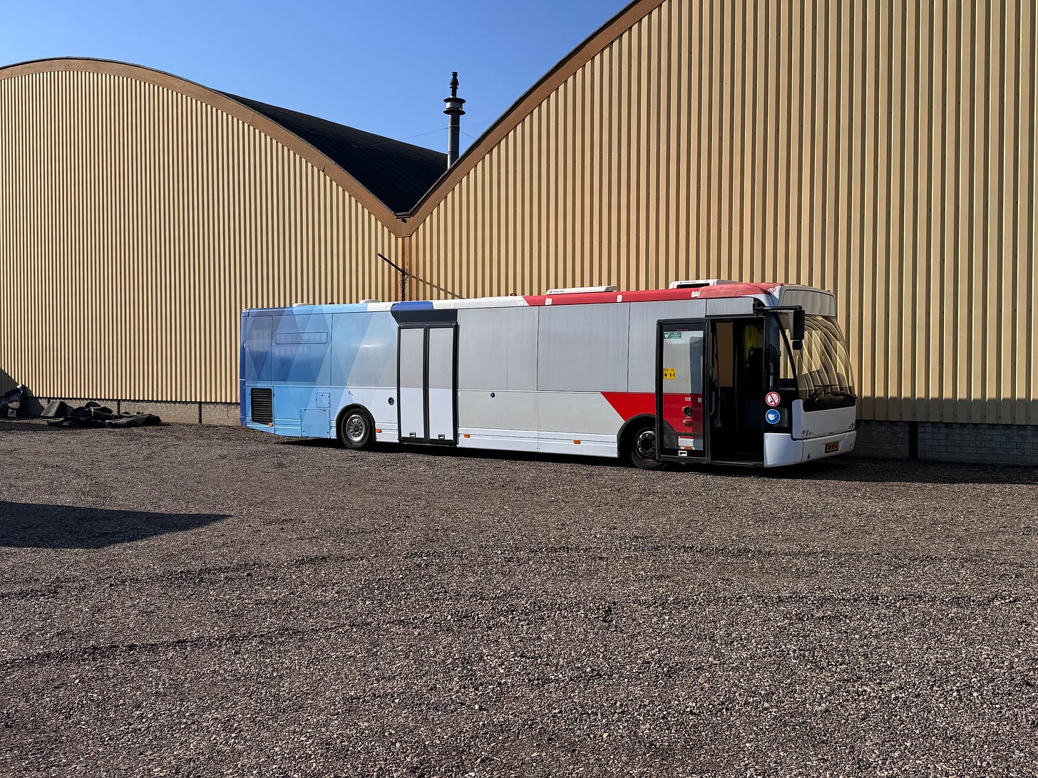 The thing that’s not double big about it is that it’s only a single-floor bus. The original (completely mental) plan was to convert a double-decker bus. Over the past 10 months, we’ve been around the Netherlands and Germany, looking at a few of them.
