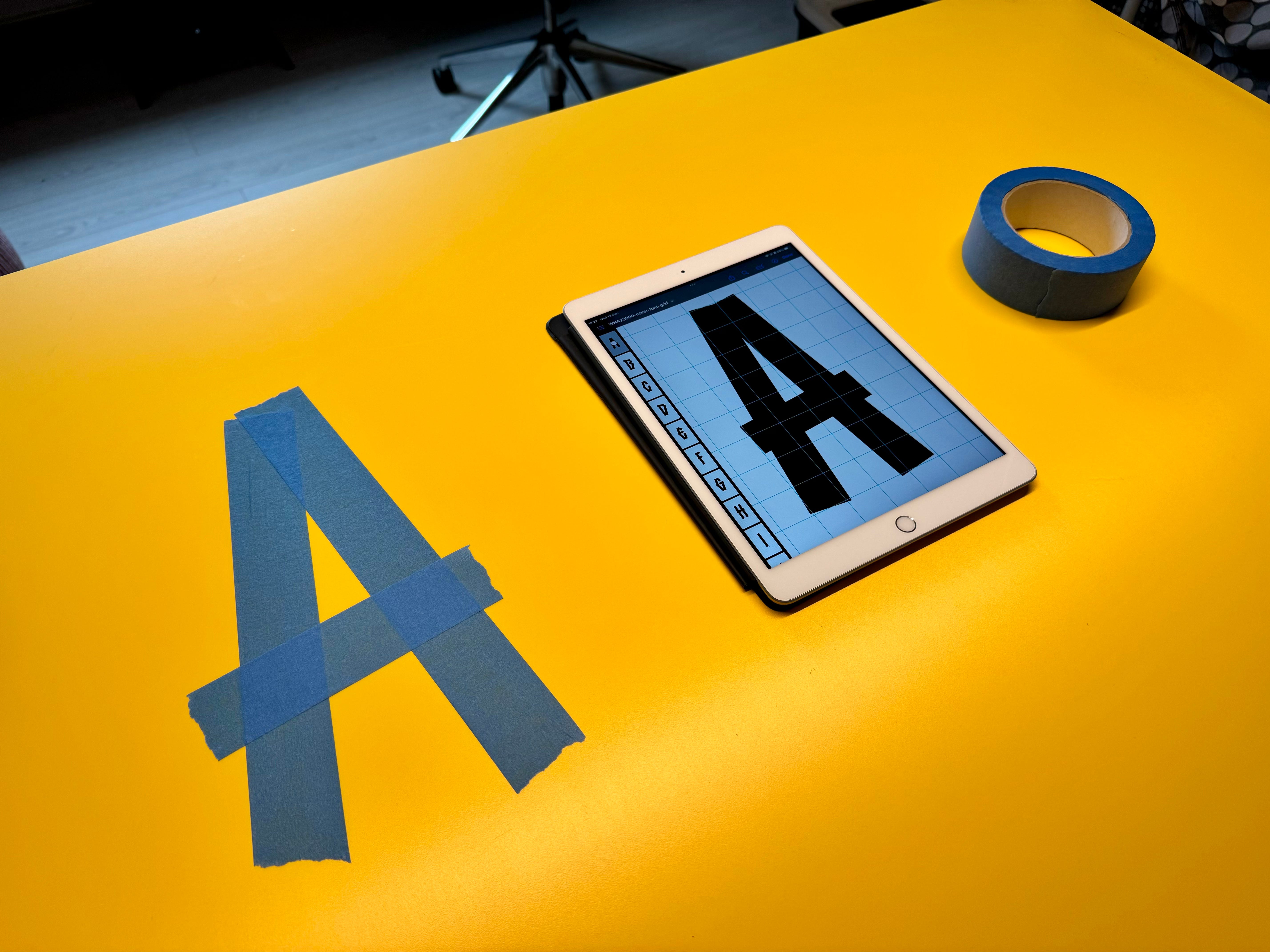 I know. I could have used any two contrasting colours, or better even, just black tape on a white background. I thought about this — trust me. But I wanted to have a sense of the final result while I worked. It closes the gap between me and the work. I believe, subconsciously, this helps me make “the right decisions” — whatever those might be.
